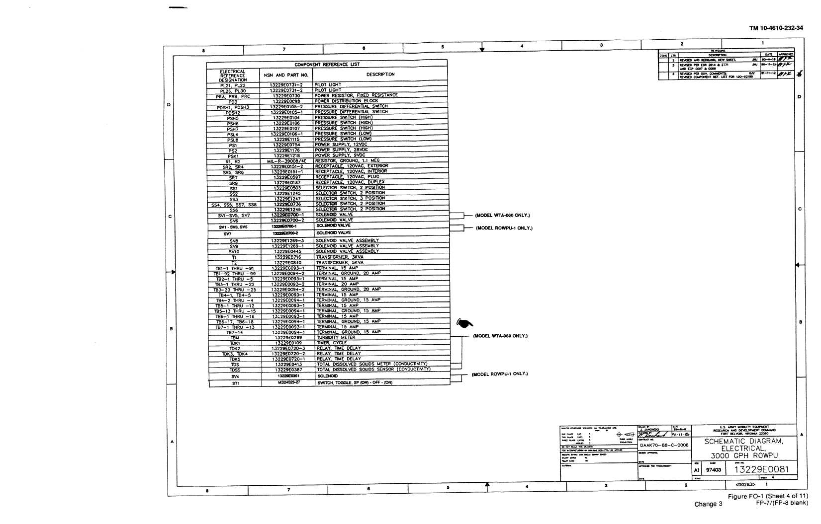 TM-10-4610-232-34 Water Purification Unit Reverse Osmosis 3 000 GPH Trailer Mounted Flatbed Cargo 22-1/2 Ton 8 Wheel Tandem Model No. WTA-060 Manual